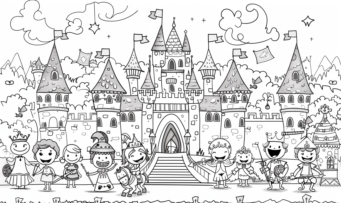 Viduramžių pilis Spalvinimo Lapas – tai spalvinga kelionė į senovę, kur kiekvienas vaikas gali sukurti savo pasaką apie drąsius riterius ir pilies paslaptis.